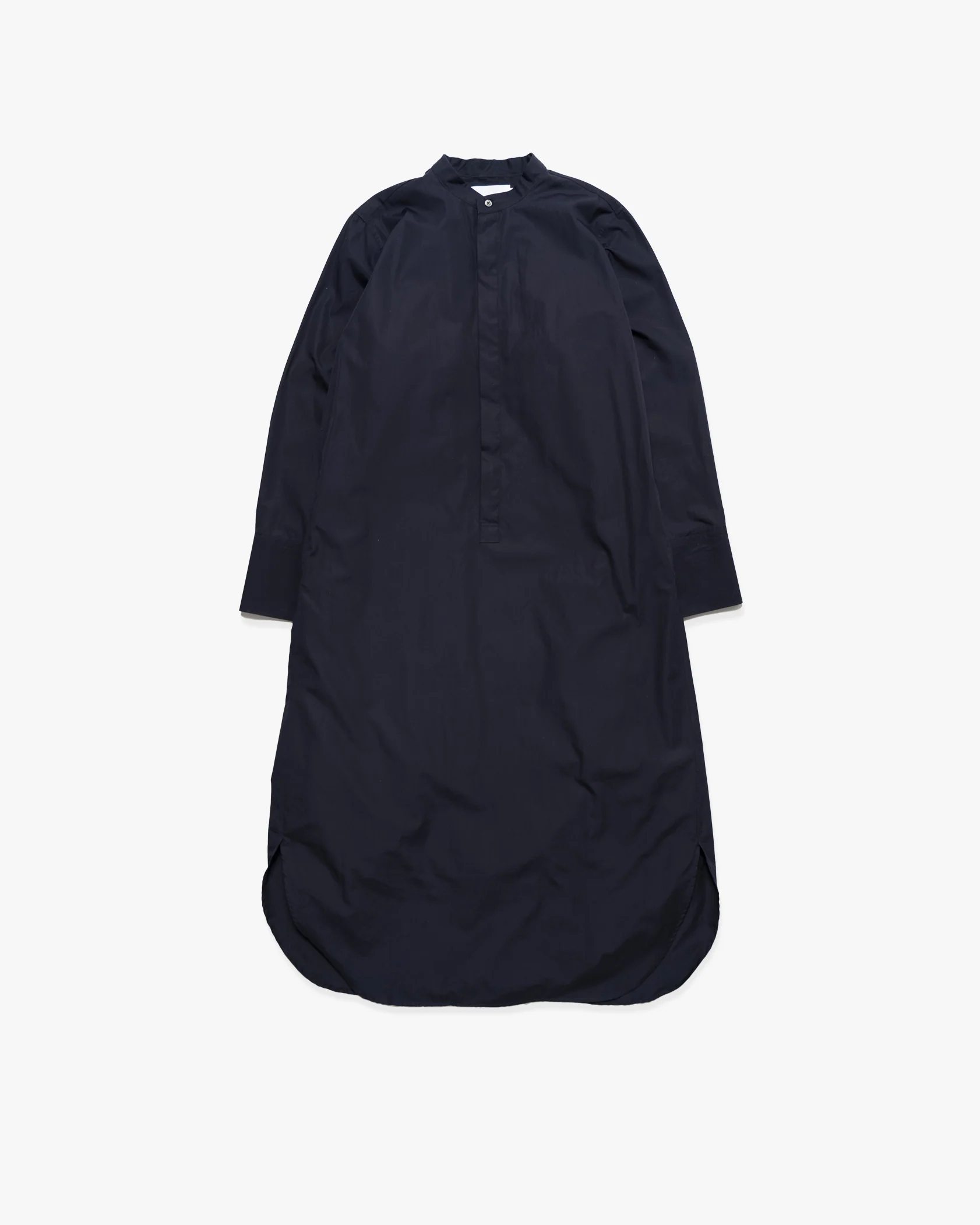 Made from densely woven Supima cotton, extra-long staple for smoothness and durability. Woven close to the maximum density to create a clean surface texture and firm feel. A pull-over shirt dress that features long cuffs and concealed front to accentuate the neckline.