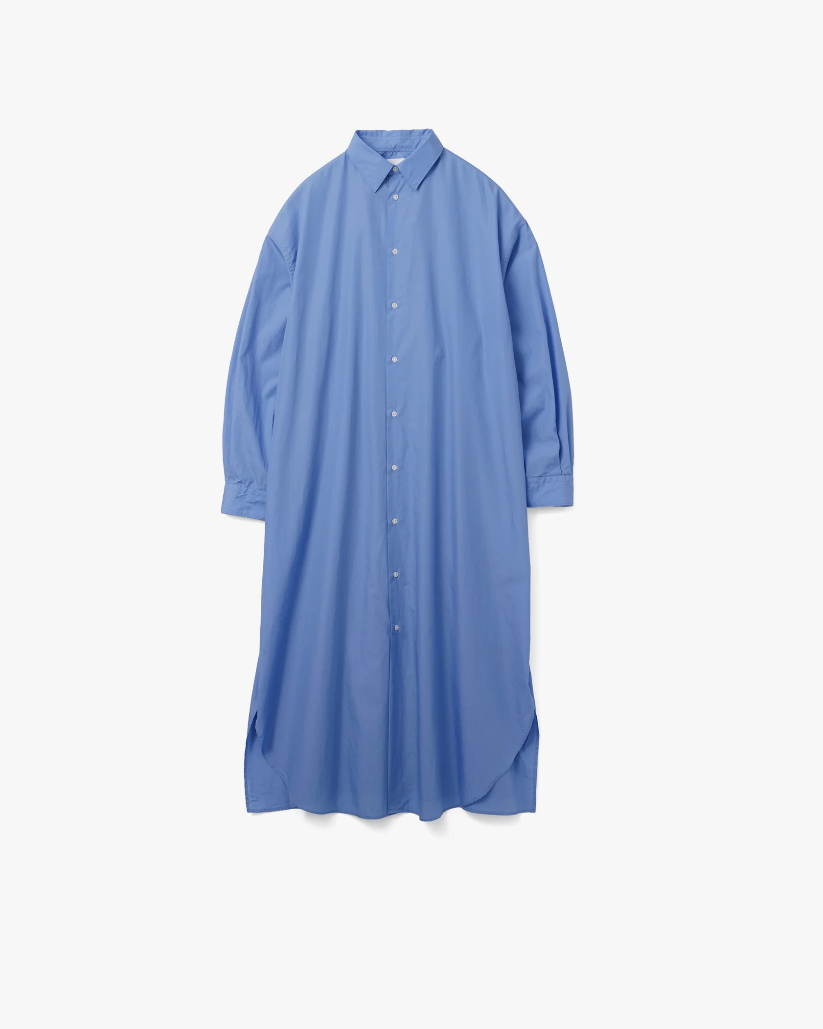 An oversized shirt dress featuring an inverted pleat at the back that unfolds with movement, creating an elegant impression. Crafted from broadcloth made with Supima cotton, the fabric offers a perfect balance of crispness and softness, resulting in a light and comfortable feel.