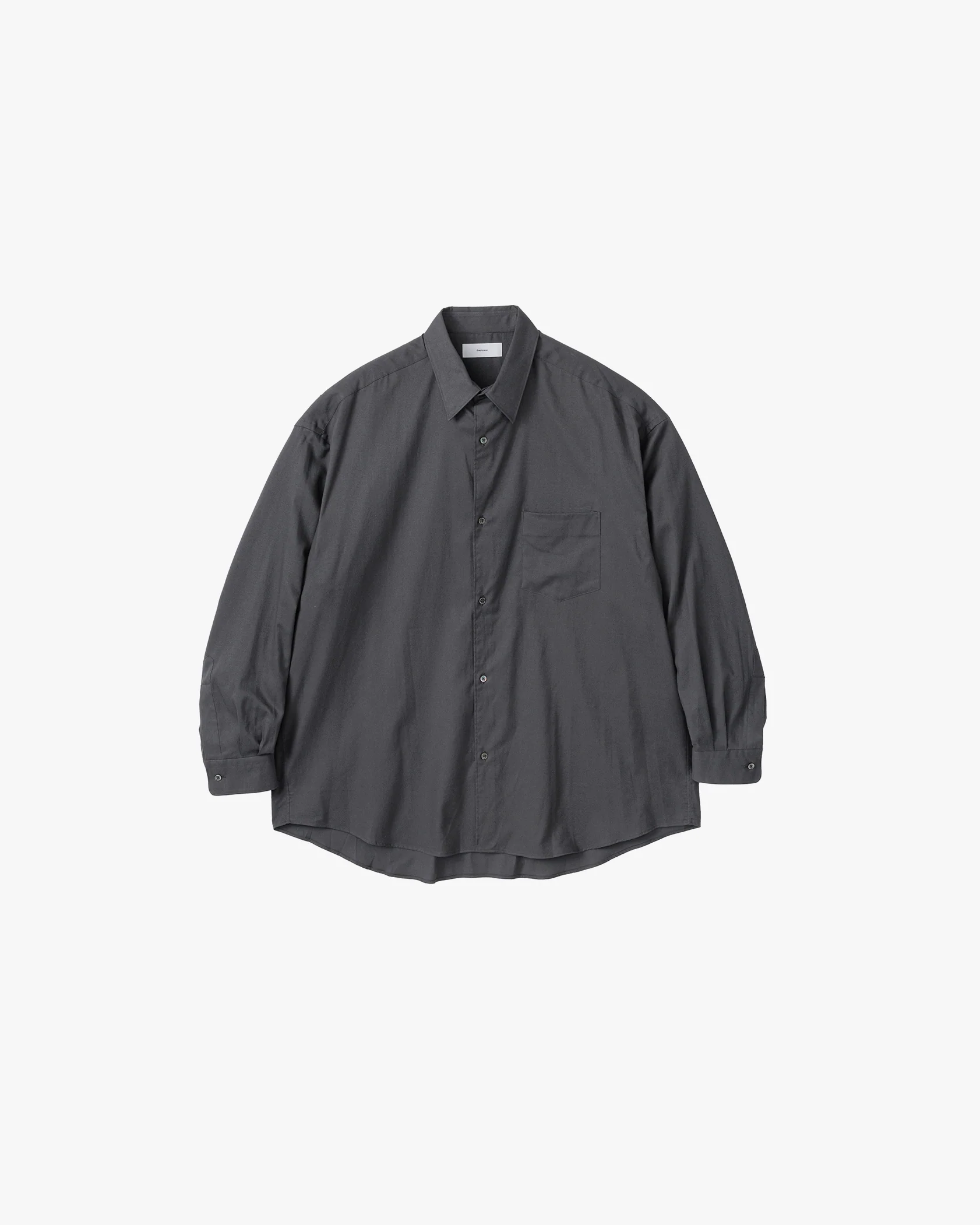 A unique oversized regular collar shirt with sloping shoulders, a low yoke, and large armholes. The twill material is a blend of fluffy, loosely twisted cotton and high-quality cashmere, making it extremely soft to the touch. It is thin yet has a moderate brushed texture, making it both lightweight and warm.