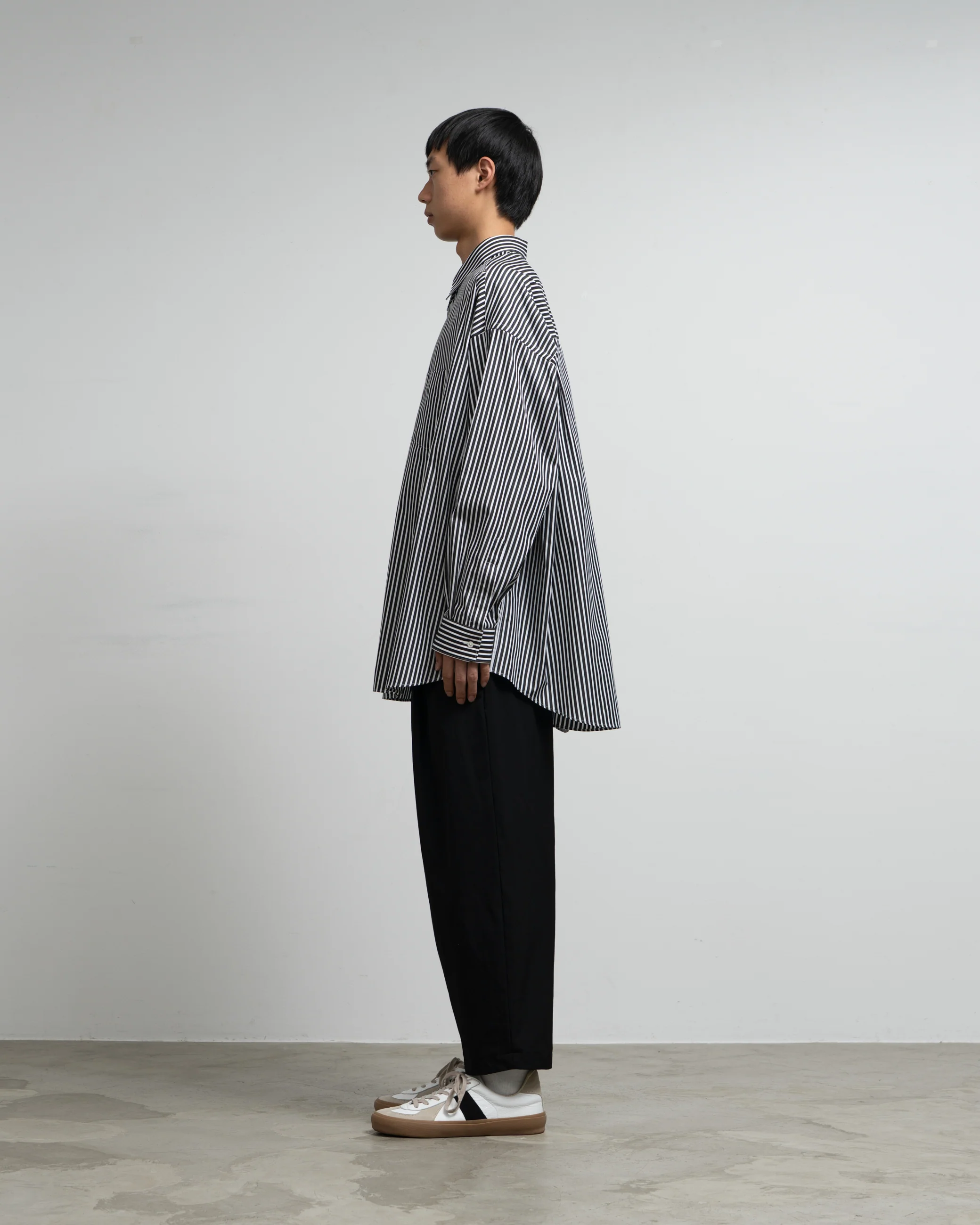 しなやかで適度な光沢感を放つスーピマコットンを用いて限界に近い密度に織り上げたクリアな表情とハリ感が特徴のハイカウントブロード。身幅はたっぷりとボリュームを持たせながら、襟元と袖口はきっちりと決めることでリラックスした雰囲気と上品さを両立。ドレスシャツに使われる接着芯を使用することでグラフペーパーの中でもネクタイ着用を想定したモデル。