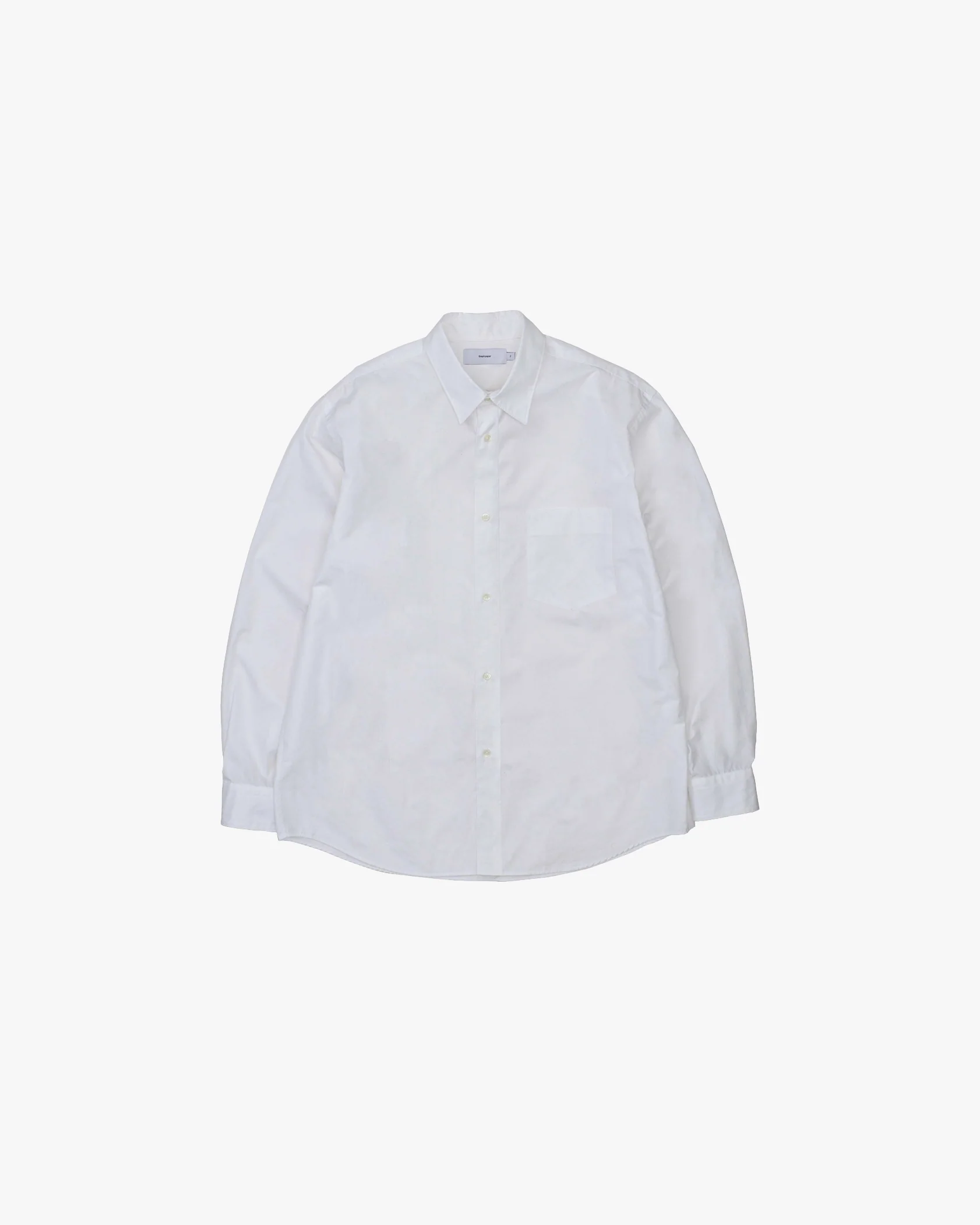 A regular collar shirt with a distinctive wide silhouette, featuring a front button placket, dropped shoulders and curved shirt tail. Made from densely woven Supima cotton, extra-long staple for smoothness and durability. Woven close to the maximum density to create a clean surface texture and firm feel. The rounded hem adds dimension and creates a refined silhouette. It’s designed to look well-balanced whether worn tucked in or untucked.