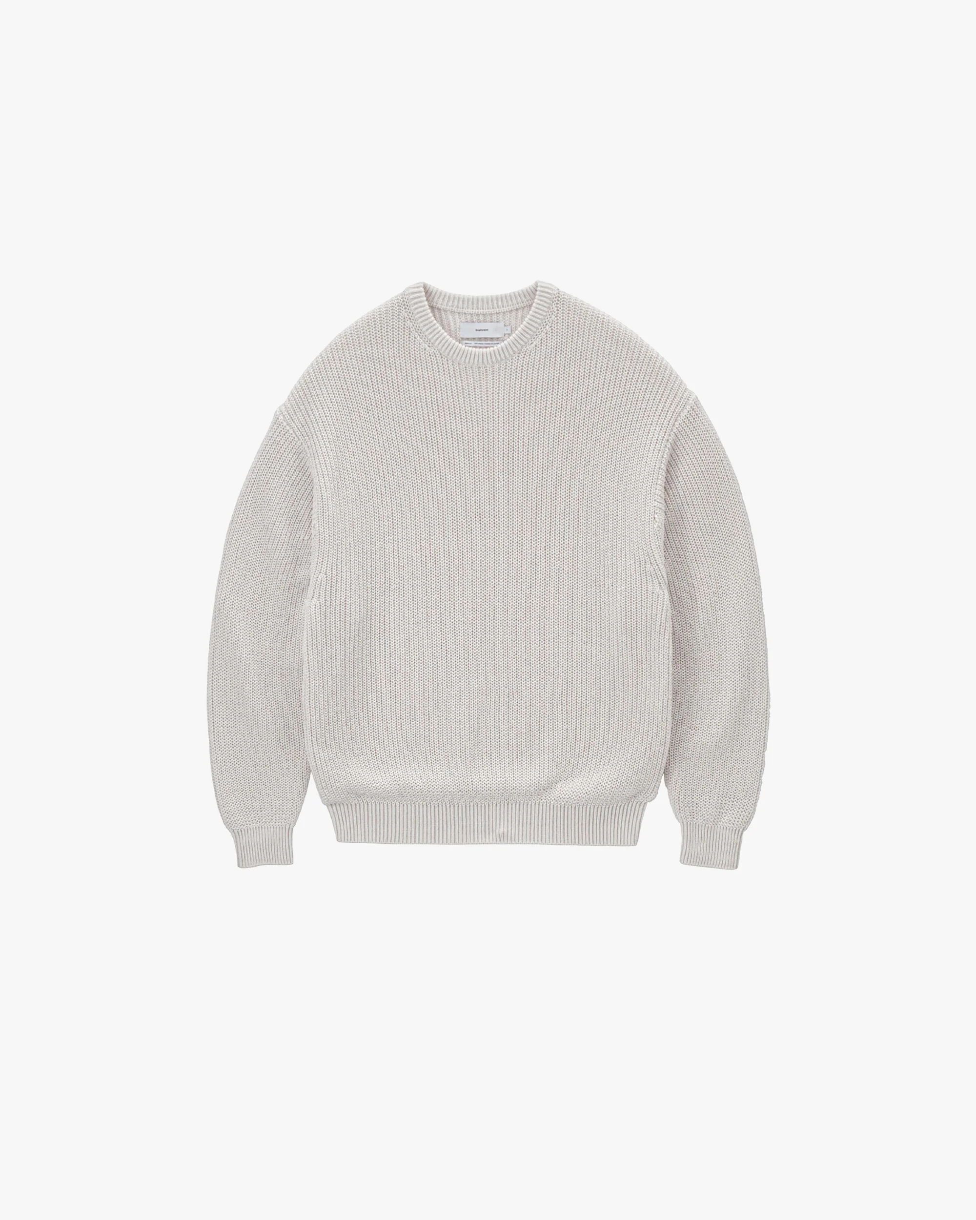 A crew neck sweater with a spacious, well-balanced silhouette and neat ribbed collar, cuffs and hem. Made of a mid-gauge shrink-resistant and highly twisted wool wrapped with nylon yarns to create a unique, highly functional fabric that’s ideal for summer.