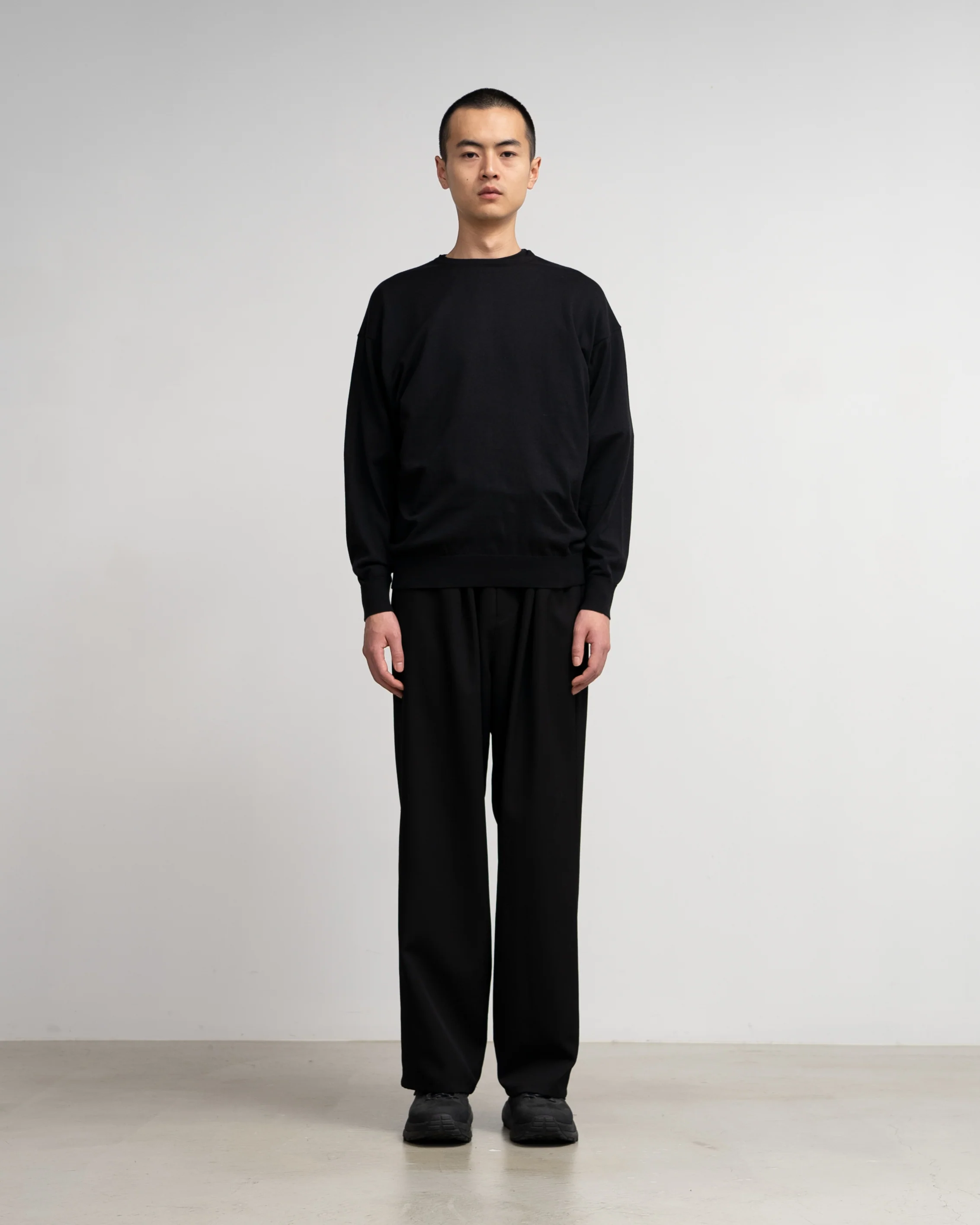 A long-sleeve crew neck knit with a moderate volume, crafted on an extremely rare knitting machine made by Germany’s Scheller—of which only a few exist in Japan.