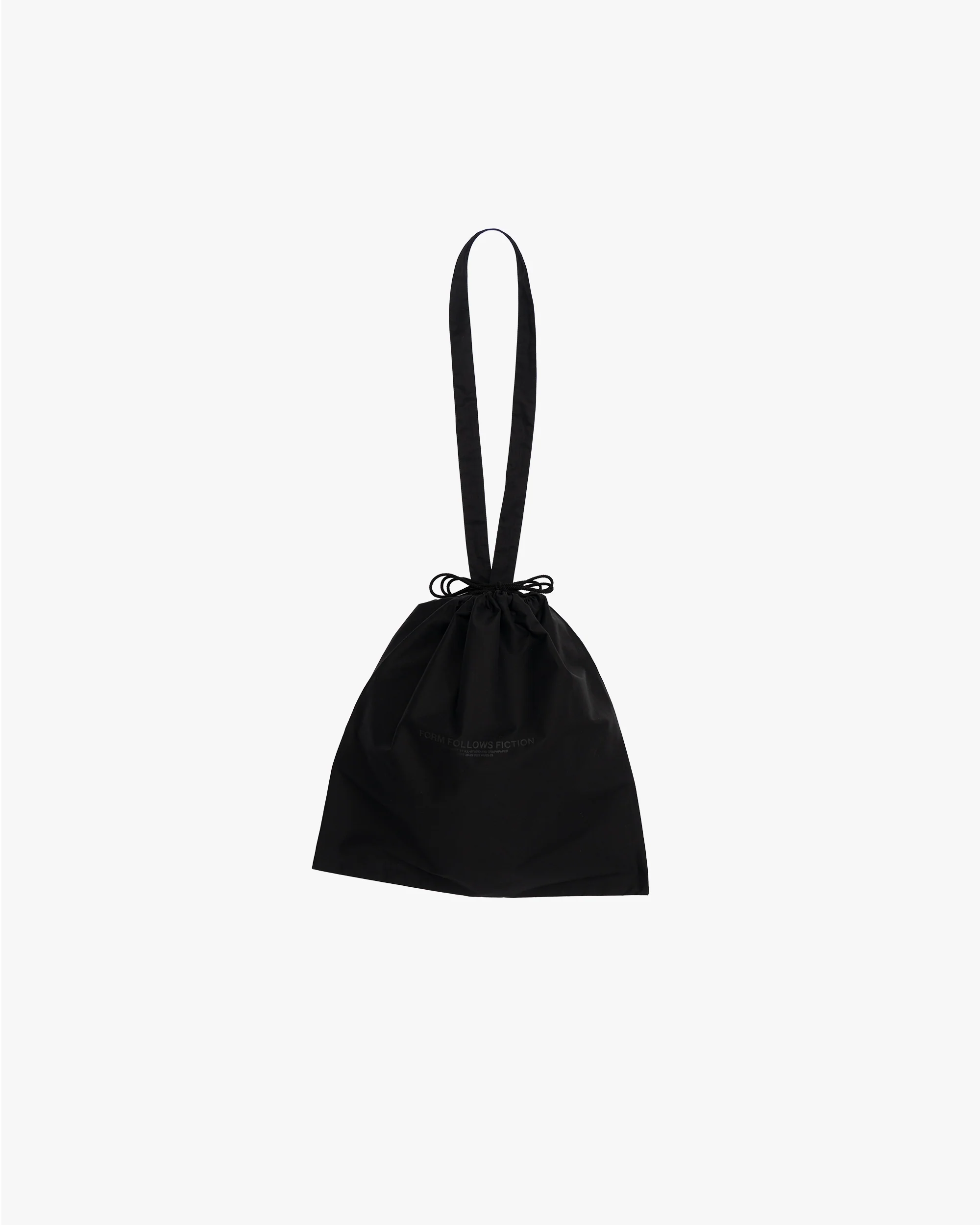 A drawstring tote bag featuring a dimensional silkscreen print of the graphic “FORM FOLLOWS FICTION,” the concept of the pop-up event. The fabric is a high-density twill woven with Solotex®, offering excellent shape retention, stretchability, and lightness.